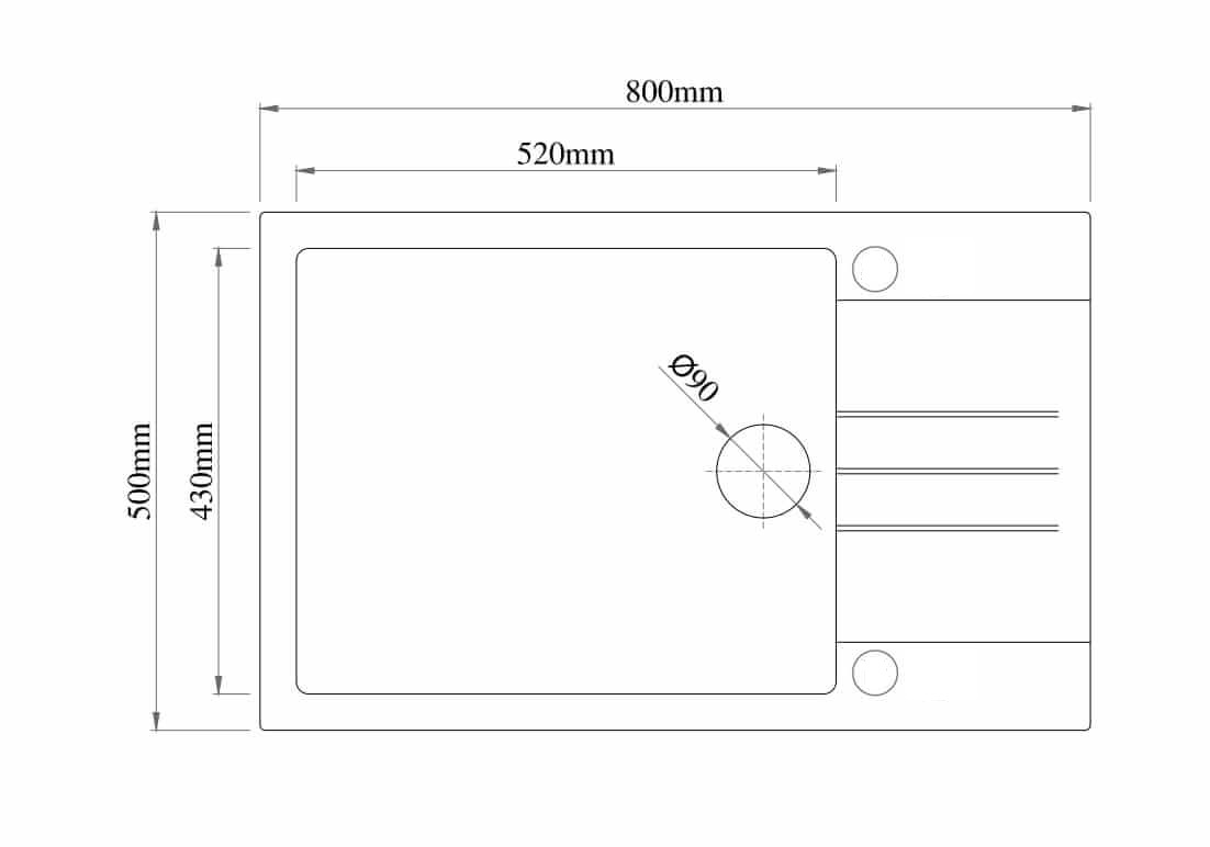 | Wymiary zlewu | 800 x 500 mm |